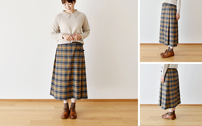 キルトベルトを付けてさらに本格的な巻きスカート風の着こなしを楽しんでいただけます。