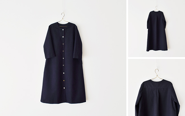 『こだわりパターンで作る 毎日着られる大人服』(ブティック社)のシャツワンピースをアレンジしたワークショップを再び開催いたします! よりすっきりとしたシルエットになるように衿をなくし、袖丈は長めの7分丈にしました。 着丈も本より長めにアレンジしています。 そのままではもちろん、軽い羽織ものとしてもご活用いただけます。 今回は、冠婚葬祭にもご利用いただけるようにC&Sよそいきのハーフリネンを、普段使いにたくさん活用いただけるようにC&Sフレンチコーデュロイをご用意いたしました。 お好きな方をお選びいただけます。 ボタンは天然素材と相性が良く、上品に仕上がる黒蝶貝ボタンを使用します。 胸のダーツや、後ろ見頃のタック、ボタン付けなど、洋裁のポイント満載のワンピースです。 是非、この機会にご参加ください。 出来上がりサイズ M/L/LL ※ご希望のサイズをお選びください。 バスト…112/117.5/122.5cm 袖丈…45/46/47cm 総丈…119.5/122/125cm 生地は下記からお選びいただけます。 C&Sよそいきのハーフリネン(ブラック) C&Sよそいきのハーフリネン(ダークネイビー) C&Sフレンチコーデュロイ(ダークネイビー) ※サンプル画像は、C&Sよそいきのハーフリネン(ダークネイビー)を使用しています。