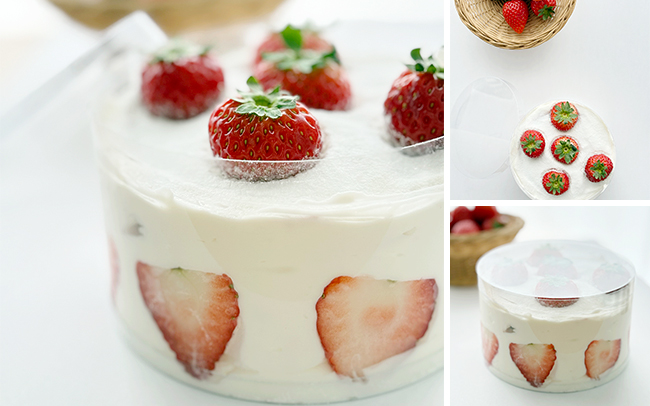 今回は、雪が積もった畑に苺が生えている様子ををイメージした「苺畑ケーキ」を作ります。