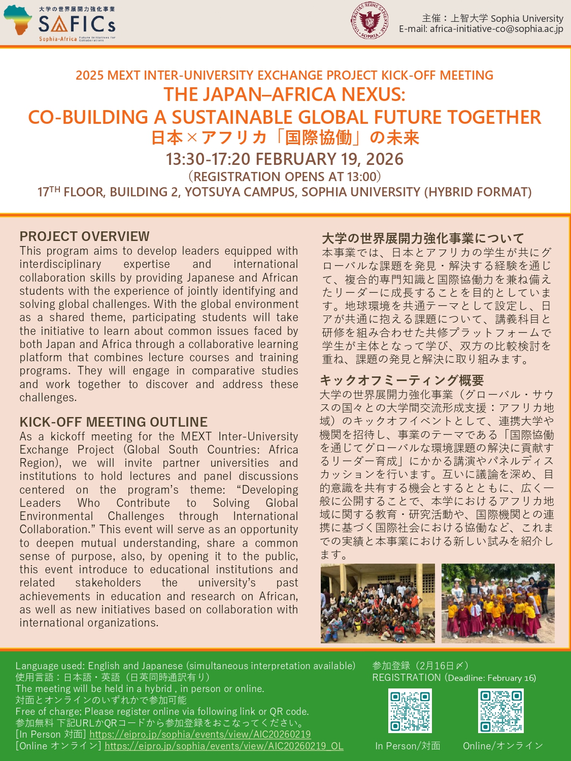 【対面/ONSITE】日本×アフリカ「国際協働」の未来 The Japan–Africa Nexus: Co-Building a Sustainable Global Future Together