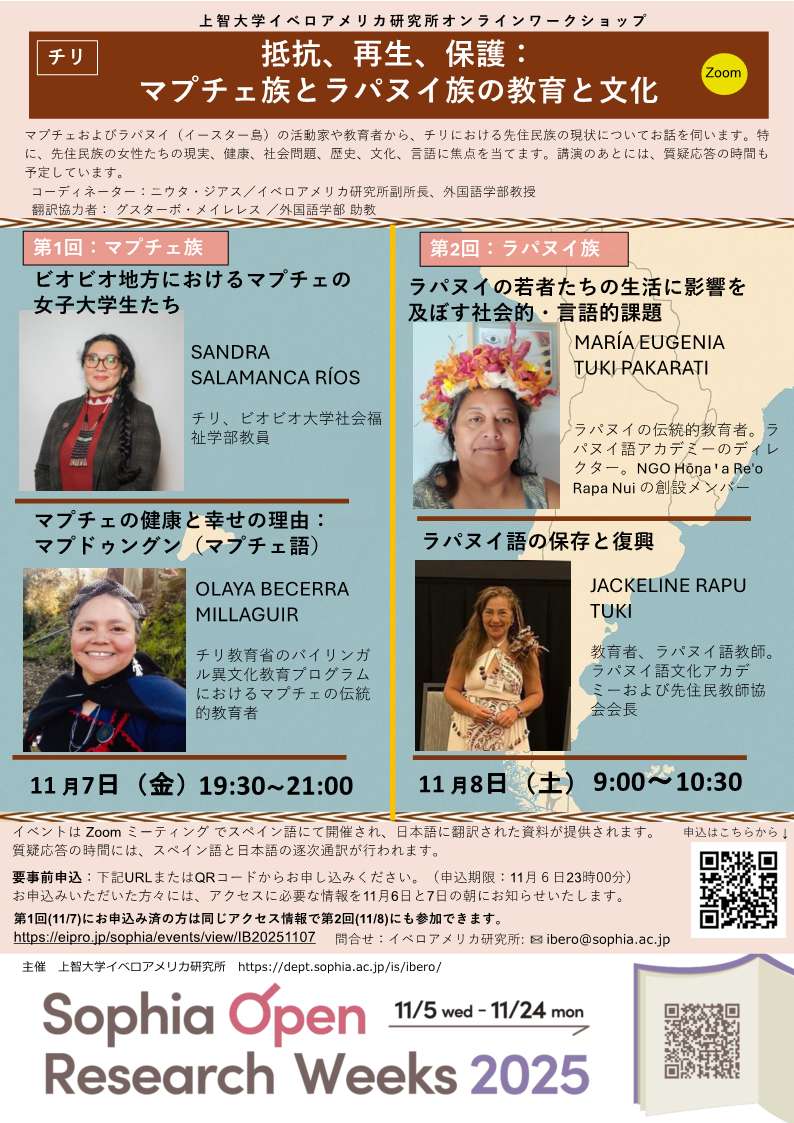 RESISTENCIA, REVITALIZACIÓN Y PRESERVACIÓN: EDUCACIÓN Y CULTURA DE LOS PUEBLOS MAPUCHE Y RAPANUI(抵抗、再生、保護:マプチェ族とラパヌイ族の教育と文化)