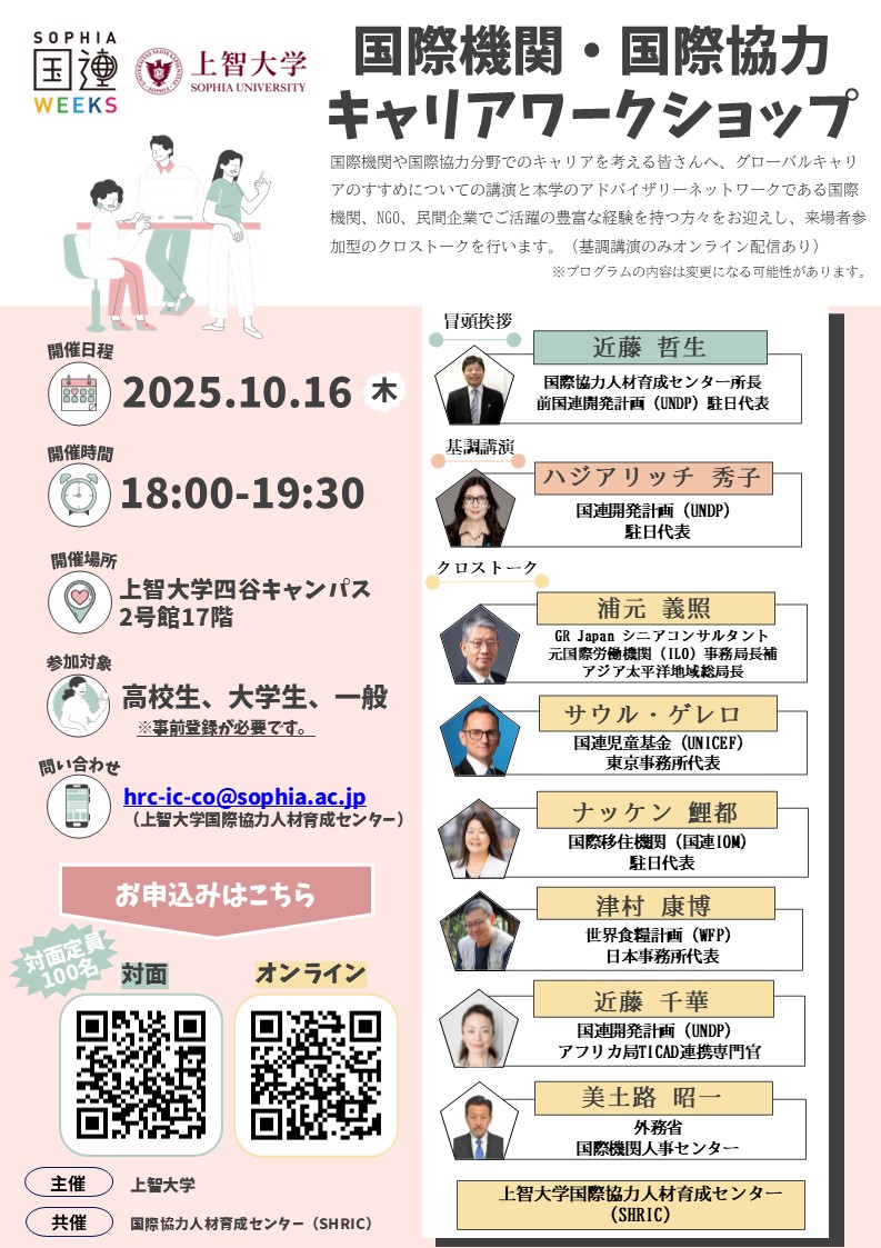 【上智大学国連Weeks】〈対面参加申込〉国際機関・国際協力キャリア・ワークショップ